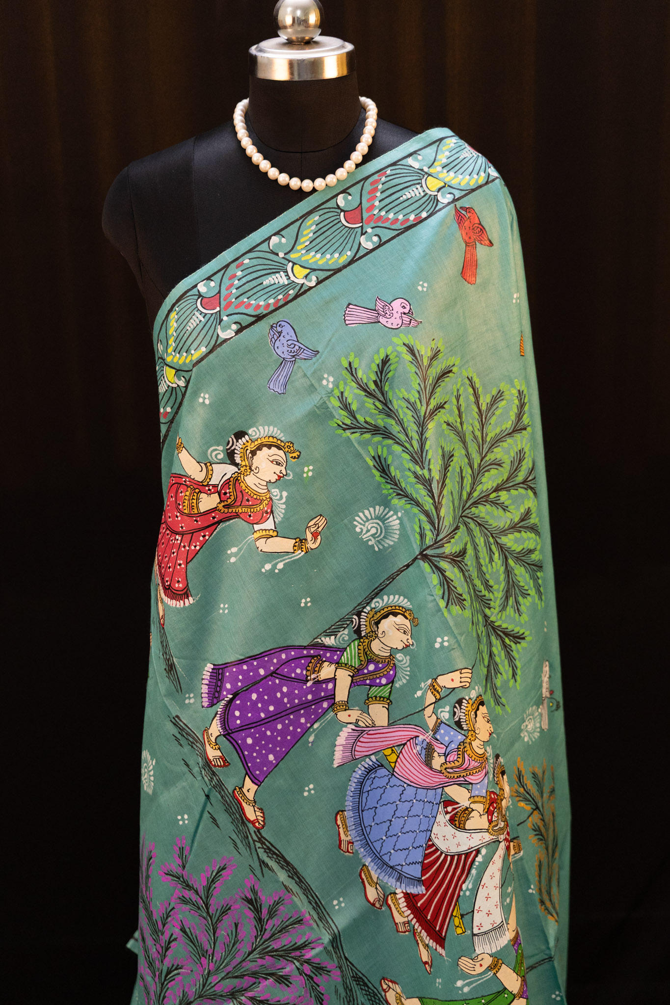 Pathachitra hand-painted sarees are exclusive wearable art.